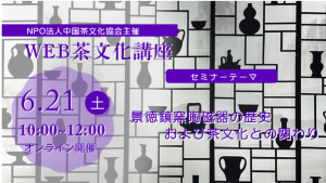 ![]() | 2024/6/8 オープンwebセミナー「お茶の歴史から中国陶磁史を学ぶ」出光美術館(東京千代田区)より中国陶磁史のスペシャリスト徳留大輔先生に ご登壇いただき、壮大な中国陶磁器の歴史を分かり易くご解説いただきました。 茶の湯にも造詣の深い徳留先生のご視点から、飲茶の変遷とともに変化してきた茶の器たちにスポットを当て、また「茶・世界——茶文化特展」(2023年9月2日〜11月30日)北京・故宮博物院にて開催の内容の一部紹介や、辰年にちなみ、多くの陶磁器に描かれた「龍の文様」についても 触れていただく、多彩で充実した内容でした。 |